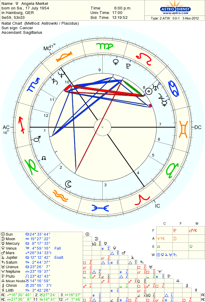Daqui a um ano vai haver eleições na Alemanha. Angela Merkel terá nessa altura Plutão em oposição a Mercúrio e Urano estará também em quadratura a Mercúrio. O mais provável é que a sua conversa seja outra….