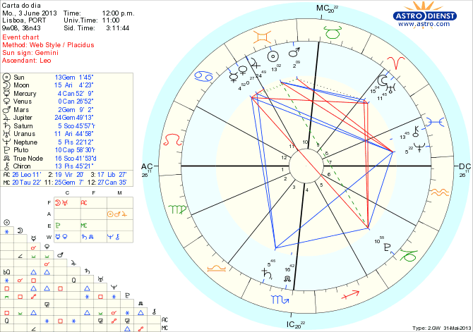 Esta Lua pelo final do dia faz um semi-sextil a Júpiter em Gémeos, aspecto que reforça a importância da comunicação de iniciativas cujo teor é definido por Mercúrio em Caranguejo: sejam questões domésticas, familiares ou nacionais, o objectivo é securizar emoções, cuidar daquilo e daqueles a que estamos profundamente ligados, transformando situações existentes estagnadas e apostando no que sonhamos como solução ideal a longo prazo, isto graças aos tais aspectos de Mercúrio a Saturno em Escorpião e Neptuno em Peixes.