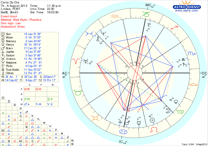 Mercúrio, a partir de hoje em Leão ajuda a exprimir tudo mais claramente. Mercúrio neste signo tem tendência para dramatismos mas permite valorizarmos posições individuais e estimula a comunicação criativa. Tal como ontem Júpiter em Caranguejo está em oposição exacta a Plutão em Capricórnio a caminho da quadratura a Urano na Lua Cheia de dia 21. É tempo de nos libertarmos, em grande, de velhas e pesadas dependências.