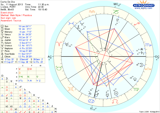 Este domingo é tenso com desafíos às emoções e ao status quo já que percebemos que os equilíbrios das relações pessoais, diplomáticas ou financeiras estão ameaçados por forças maiores e que temos de encontrar soluções novas para proteger a paz e a justiça desejadas. A Lua activa a quadratura de Urano a Plutão, no seu trânsito por Balança, o que permite uma certa frieza de análise apoiada pela Vénus em Virgem que vê os detalhes e procura a melhor forma de prestar serviços. O cuidado no que se afirma ou na forma como nos conduzimos é obrigatório por duas razões: em primeiro lugar, Mercúrio em Leão está em quadratura a Saturno em Escorpião o que impede qualquer tipo de especulação ou excesso de velocidade fisíca ou mental. De seguida Marte em Caranguejo faz um sesquiquadrado a Neptuno retrógrado em Peixes e temos de tomar atenção a não nos deixarmos ir atrás de confusões ou fantasias, procurando clareza de propósitos e honestidade na avaliação de situações pessoais ou colectivas.