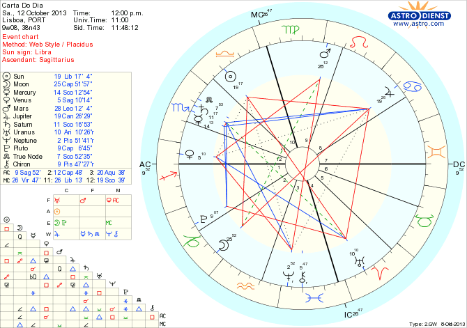 Mais volátil e radical me parece a quadratura da Lua a um Sol em Balança, que comanda um Marte em Leão, que por sua vez pode dispersar-se ou confundir-se pois está oposto a Neptuno. Este Marte deve num pulo certeiro unir-se a Úrano.