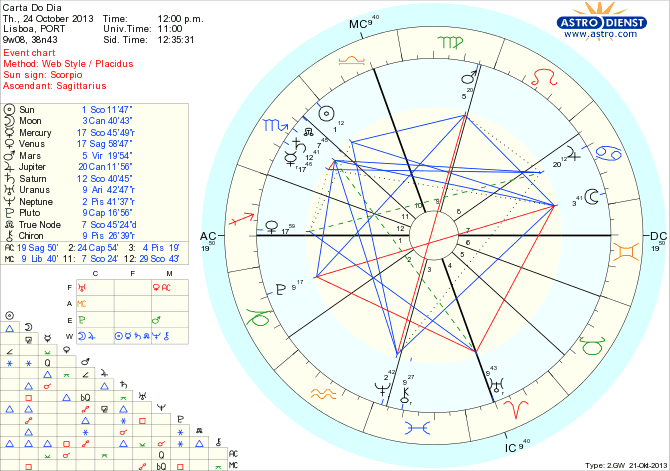 A comunicação hoje é fundamental, mas não vamos falar de nada de novo. Com Mercúrio retrógrado em Escorpião em semi-sextil a Vénus em Sagitário temos a oportunidade de re-aprofundar o que nos une e nos separa, as dependências psicológicas ou financeiras que nos dominam, os orçamentos que nos gerem e o que de transcendente partilhamos na nossa mortalidade. O quintil de Mercúrio a Marte em Virgem garante agilidade e criatividade na busca de soluções detalhadas.