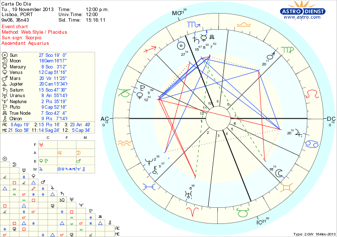 Pode haver discussão porque as opções são várias e é no detalhe que tudo se joga mas em geral é possível hoje estar optimista quando aos resultados e planear o seu desenlace. É a Lua em Gémeos quadrada a Marte em Virgem que põe a tensão na análise dos pormenores das diferentes variáveis enquanto um semi-sextil a Júpiter permite intuir o que irá segurar todas as pontas e dar confiança nas mudanças a realizar – marcadas pela presença do Sol, Saturno e conjunção de Mercúrio- que rege Virgem e Gémeos- ao Nódulo Norte em Escorpião.