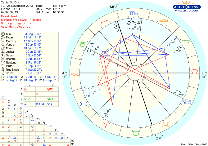 Entre os horizontes que se abrem e os detalhes a que é preciso atender percebemos hoje que o diálogo ou troca de informações com as estruturas dominantes, organizações ou poderes a que estamos sujeitos são fundamentais para permitir evolução nos processos. A razão e intelecto têm de ir mais fundo e ajustar-se aos limites impostos com Mercúrio conjunto a Saturno em Escorpião enquanto a Lua em Virgem nos obriga a rever todos os detalhes à procura de formas de satisfazer os impulsos de futuro dados pelo Sol em Sagitário que, em sesquiquadrado a Júpiter em Caranguejo, exige inspiração e determinação em ultrapassar barreiras e seguir o caminho desejado.