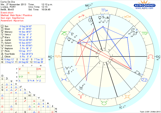É fácil perder a cabeça hoje por tudo e por nada, disparar em todas as direções e deixar que os medos ou irritação – acumulados com as indecisões – nos façam perder o verdadeiro sentido do dia: o de alinhar razão e coração, acertar contas nas relações e nas finanças e dar um salto qualitativo no sentido da nossa segurança. É a Lua conjunta a Marte em Virgem que atiça as raivas – mas que bem orientada permite trabalhos domésticos minuciosos ou a análise sistemática de contabilidades ou notas de rodapé. Depois, Mercúrio, regente da Virgem, em Escorpião em sextil a Vénus em Capricórnio, vem pôr um ponto final nas revisões feitas desde o dia 8 de Novembro – quando retrógrado fez o mesmo aspecto a Vénus-  e estimular diálogos transformadores da forma como nos relacionamos seja pessoal, seja material seja estruturalmente. Queremos dizer o que de mais profundo achamos que temos de partilhar de forma a desenvolver relações e investimentos a longo prazo. O objectivo último é o de garantirmos e mesmo expandirmos as bases de segurança pessoal, familiar ou mesmo nacional e é nesse sentido que orientamos as comunicações- podemos até falar demais – graças ao trígono de Mercúrio a Júpiter em Caranguejo. Em resumo, mais um dia em que o diálogo ou contactos são a chave das questões e em que é preciso não nos prendermos com ninharias mas sim, atentos aos detalhes, apostarmos na estabilidade. A entrada da Lua em Balança pelas 22 horas GMT  ajuda a ver os dois lados da moeda.