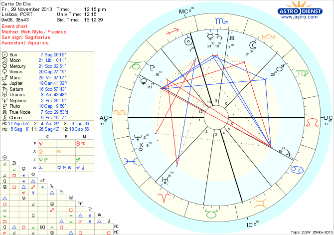 Os contactos sociais podem parecer fáceis mas não devemos exceder-nos no que revelamos nem esperar mais do que a troca simples de informação. Projectar expectativas nos relacionamentos é o grande risco do dia com a Lua em Balança em quadratura a Vénus em Capricórnio e a Júpiter em Caranguejo. O mais importante é percebermos qual é a nossa posição e caminho e as ideias e atitudes que devemos corrigir para sermos fiéis a algo maior ou que nos guie, graças ao semi-sextil entre o Sol em Sagitário e o Nódulo Norte em Escorpião. Vamos ser forçados a recordar velhas feridas de assertividade ou ímpetos para agora termos a possibilidade de reagir de maneira diferente, devido ao contraparalelo de Marte em Virgem a Quíron em Peixes e ao quintil do Sol a Marte. Por fim, o trígono de Vénus a Marte e sextil de Mercúrio a Vénus pede atenção ao dito e ao não dito nas relações e contactos enquanto a conjunção de Mercúrio a Saturno estimula a reserva, apesar de qualquer clima de festa.