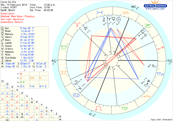Em suma, neste arranque da semana há que ter paciência e força para encarar situações de mudança profunda das nossas estruturas de vida – que preferíamos não ter de fazer- mas que podem ser bem sucedidas se procurarmos novo equilíbrio nas relações pessoais e financeiras, com o Sol em trígono a Marte em Balança. Marte fará conjunção ao Nódulo Norte em Julho e esse será o momento de clarificação.