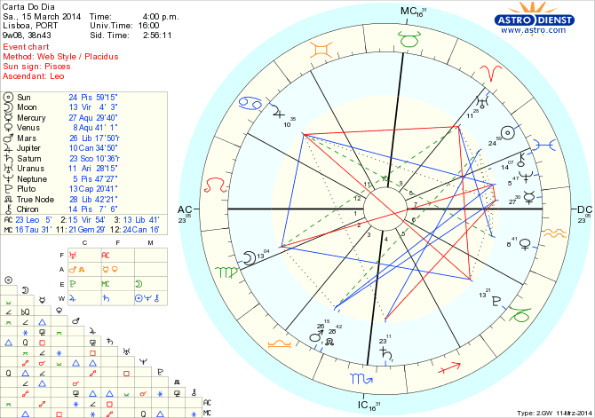 Pôr em risco a organização e segurança em nome de qualquer coisa maior que acreditamos que nos pode vir a sarar velhas feridas é a tendência deste sábado em que um qualquer sentido de propósito nos guia e leva a procurar transformações profundas nas estruturas em que estamos inseridos. Estamos prontos a arriscar e ir mais longe atrás do que o sonho, a ideologia ou o espírito pedem e conseguimos encontrar apoio em novas formas de partilhar sentimentos e matéria. É a Lua em Virgem oposta a Quíron em Peixes e trígono a Plutão em Capricórnio que nos faz explorar caminhos de salvação e mudança enquanto o Sol em Peixes em trígono a Saturno em Escorpião traz o templo a quem quiser rezar. Podemos passar por este processo em termos individuais mas não deixaremos de assistir no colectivo a estas tendências já que a afirmação dos projectos sociais ou colectivos e a manifestação dessa vontade, mesmo que obrigue a um reequilibro de poderes está na ordem do dia e de todo o fim de semana com Mercúrio, regente da Lua em Virgem, em trânsito em Aquário, em trígono a Marte e Nódulo Norte em Balança e em quincúncio a Júpiter em Caranguejo o que exacerba as tensões entree mudança e segurança, o clamar de ideias e a protecção do lar ou da nação. O paralelo do Sol a Quíron hoje e amanhã faz-nos alinhar espírito e regeneração ou cura, num processo que começou na Lua nova do princípio de Março e que é tema de fundo onde os outros aspectos se desenrolam. O objectivo é integrar o que está disperso ou separado por dores profundas, defesas ou impedimentos – seja em termos psicológicos, seja em termos colectivos, acontece porque vamos ao fundo das questões para emergir com novo sentido de valor próprio. Amanhã, domingo, está previsto um referendo na Crimeia, em crise acentuada desde o arranque de Março- é também um teste do seu alinhamento astral….