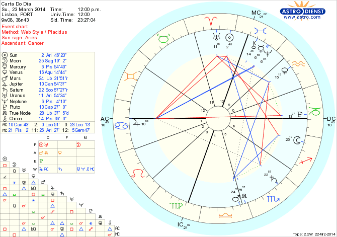 Temos quase todo o dia para continuar a achar que tudo é possível e que podemos estar em bons termos com todos, inspirando os outros com as nossas ideias e abrindo os nossos próprios horizontes através de contactos intensos e variados. Mas, pelas oito da noite GMT, a Lua sai de Sagitário onde fez sextil a Marte e ao Nódulo Norte e entra em Capricórnio o que muda a maneira como olhamos em redor e as emoções que nos movem. A partir da noite estamos já a antecipar os processos de transformação em curso com que vamos ter de lidar logo no início da semana e, de facto, o melhor é mesmo concentrar já hoje as ideias e estabelecer relações que possam ser úteis para, a partir de segunda feira, podermos ter algum controlo no que está a acontecer. O que se passa é que a Lua em Capricórnio é cautelosa, mesmo calculista, fria e ambiciosa, procura fazer planos a logo prazo que garantam o alcance dos objectivos mas enquanto as emoções nos pedem esse caminho pró-seguro, o Sol em Carneiro, ao qual a Lua faz já esta noite quadratura, põe-nos em situações de fogo, em urgências, que não são compatíveis com a necessidade de construir lentamente alicerces. A forma como conseguirmos esta noite compatibilizar ímpetos e defesas vai ser determinante para segunda feira encararmos as crises de transformação em curso, mudanças de poderes, dependências, liberdades e restrições, pessoais, políticas ou financeiras, quando a Lua activar a quadratura de Urano, Plutão e Júpiter. Pensar bem hoje para agir bem amanhã, deve ser o lema do dia.