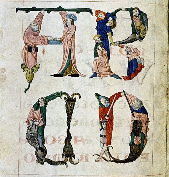 A imagem é uma das 46 folhas do “Macclesfield Alphabet Book” um pergaminho inglês de cerca de 1490 que está na British Library que o adquiriu por 700.000,00 euros.