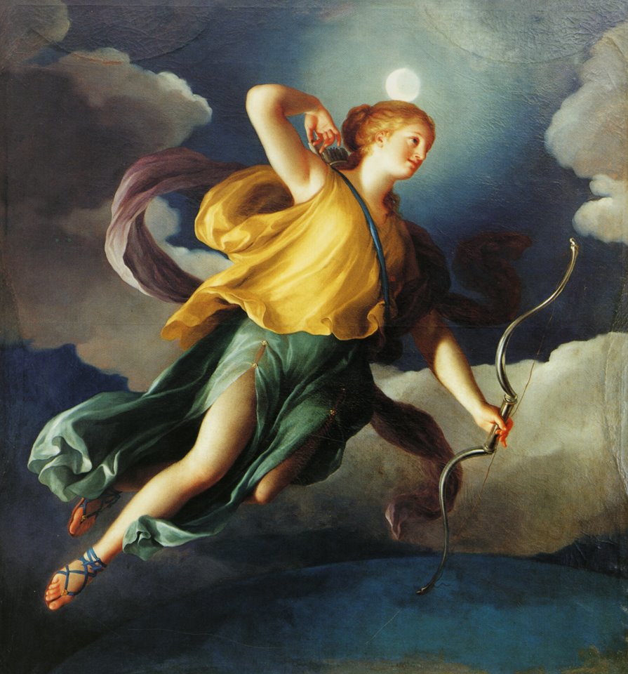 A imagem é uma tela do pintor alemão da Boémia Anton Raphael Mengs (1728 – 1779), precursor dos Neo-Clássicos e chama-se “Diana, Personificação da Noite”