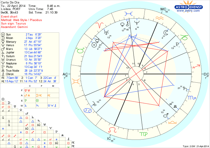 São os assuntos pendentes que hoje nos obrigam a discutir e a tendência é para que os argumentos aqueçam. A comunicação pode até virar acusatória ou agressiva se não controlarmos os ímpetos e procuráramos novos equilíbrios nas negociações. É Mercúrio em Carneiro que faz conjunção ao Nódulo Sul regido por Marte que estimula o debate aceso sobre questões antigas ao mesmo tempo que faz quadratura à Lua em Aquário que por seu lado põe o ênfase nos grupos, colectividades ou sociedade a que pertencemos. Sentimos que há que defender com veemência o nosso lugar no mundo ou mesmo o nosso mundo, porque o sentimos ameaçado. De facto, não para de subir a tensão no sentido da transformação das estruturas familiares, domésticas ou nacionais com base em novos acordos ou posições negociais que respeitem tanto os gritos de liberdade como as necessidades de controlo. Isto deve-se a Marte a activar ainda nos próximos dias a grande cruz cardinal com Júpiter em Caranguejo, Urano em Carneiro e Plutão em Capricórnio. Como Marte está retrógrado, há muita zanga contida pronta a irromper e a quadratura a Júpiter, oposição a Urano e quadratura a Plutão torna difícil a contenção. Ao mesmo tempo, estes aspectos dão-nos a energia necessária para fazermos transformações de fundo nas estruturas em que assentam as nossas vidas. Mas atenção, apesar do fogo na palavra e nas acções, só há uma via para chegarmos aos novos paradigmas- a via do diálogo, da justiça e da paz, assinalada pela presença do Nódulo Norte em Balança. Só que, com Mercúrio hoje oposto, não vai ser fácil pensar antes de falar…..