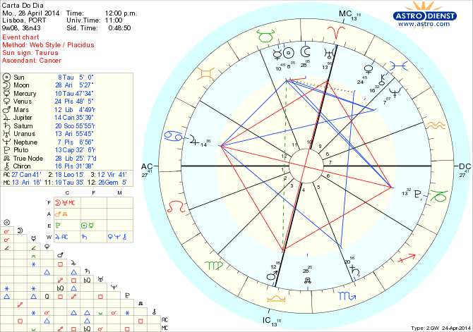Temos hoje de acabar tarefas, elaborar listas, deitar contas à bolsa e à vida e prepararmo-nos para pôr fim a mais uma etapa do caminho, antes de passarmos à fase seguinte. A concentração nas coisas práticas é desejável, mais ainda porque as complicações são uma sombra real a ter em conta. Estamos em vésperas de um eclipse do Sol em Touro, conjunto a Mercúrio, em plena grande cruz cardinal, e a proposta astral aponta para o termo de um estado concreto das coisas, o seu impacto no mundo material e no valor que estamos dispostos a pagar pelo nossa segurança, bem estar e pela concretização das mudanças profundas que estão em curso.