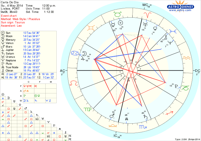 Os sentimentos são intensos, os acontecimentos saiem da norma e o desejo de satisfação difícil de contentar. Sensíveis aos estímulos externos, a absorver todas as energias que nos rodeiam, vivemos com tensão as mudanças de circunstâncias, apesar da esperança que tudo corra bem. É a Lua em Caranguejo que faz conjunção a Júpiter que nos anima mas também faz quadratura a Urano – o que nos impacienta- e oposição a Plutão – que nos obriga a chegar a extremos emocionais, entre o passado e o futuro, segurança e transformação, casa, família, nação ou forças externas. Assim, torna-se difícil saber que fazer já que é daqueles dias em que se é “preso por ter cão e preso por não ter”. No entanto, um semi-sextil do Sol em Touro a Urano em Carneiro ajuda a tomar liberdades sem deixar de ter os pés bem assentes no chão. A chave está em estarmos prontos para deixar para trás velhas dependências e respostas emocionais automáticas e mudarmos conscientemente o que for possível seja material, financeira ou psicológicamente.