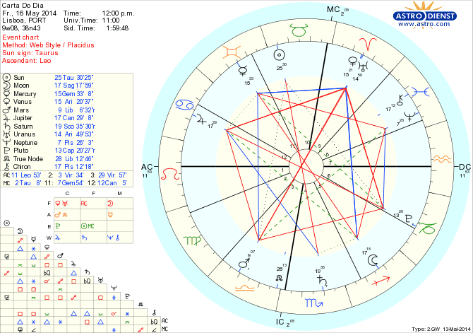 Hoje podemos sentir que estamos a ir na direcção certa depois da turbulência em torno da Lua Cheia. Chegaram-se a climaxes, foram feitas opções e agora tudo parece fluir sob novas perspectivas, horizontes geográficos, mentais ou filosóficos que nos abrem as ideias e inspiram confiança. A Lua está no optimista signo do Sagitário e faz trígono a Vénus em Carneiro que sabe o que quer nas relações ou nas finanças e que deseja acima de tudo iniciativas interessantes. Como Vénus faz um sextil a Mercúrio em Gémeos que por sua vez se opõe à Lua é só preciso ter cuidado para não dizer nada que antagonize os outros ou para não falar sem que o quês ema dito corresponda exactamente ao que sentimos. A coerência é desejável, sempre, e em particular hoje com este aspecto que estimula o disparate.