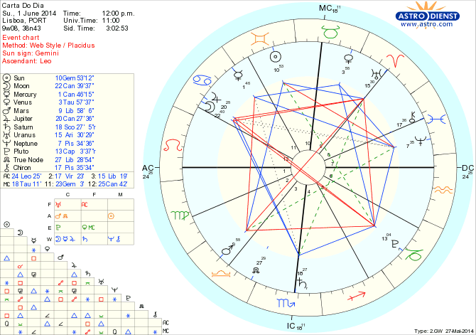 As emoções são intensas, os encontros têm impacto, a família, tribo, casa ou o que nos é familiar toma proporções maiores assim como o desejo de nos protegermos e de proteger quem e o que nos toca íntimamente. São os grandes regressos às raízes em que queremos apoio, conforto, ninho, bem estar estrutural e emocional graças a Lua em Caranguejo conjunta a Júpiter. Não é difícil que tudo corra o melhor possível se conseguirmos ir ao encontro dos outros, comunicarmos anseios e objectivos e ser capazes de, perante qualquer que seja o público, assumirmos a maior honestidade. Comunicação e contactos continuam a ser chave com o Sol em Gémeos enquanto um paralelo a Júpiter traz optimismo à expressão da capacidade de ganhar terreno em qualquer frente. O que é preciso é incorporamos no discurso, geminiano, a nossa visão da verdade, jupiteriana e deixarmos o coração apelar às respostas desejadas. Um domingo para nos abrirmos ao que deve vir a ser uma nova ordem- o apoio procurado tem de vir de novas formas de organização, um nova base estrutural, em pleno que estamos nas quadraturas de Urano, Plutão, Marte e Júpiter e com um quincúncio nos próximos dias entre o Sol e Plutão: a mudança de discurso faz parte do processo.