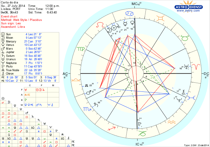 Como o Sol, Júpiter e a Lua continuam em Leão, o excesso de ênfase na afirmação vital pode continuar a ofuscar a modéstia do sentir- há que desdramatizar e controlar também as chamadas de atenção para ouvirmos os sinais. Mercúrio esteve nos últimos dias em oposição a Plutão, – onde hoje está Vénus-  e trouxe revelações de impacto profundo sobre as quais agora somos chamados lidar do ponto de vista relacional. Agora Mercúrio está numa posição crucial para dialogarmos saídas harmoniosas para os conflitos existentes, mas isso não é facilitado: o planeta da comunicação está em Caranguejo em quadratura ao Nódulo Norte em Balança e Sul em Carneiro- à partida tudo o que dissermos em defesa dos interesses particulares ou nacionalistas está fora do que seria a norma ou correcto defender e as prestações públicas ou sociais não têm os ecos pretendidos. Sabendo isto, há que estar pronto para as críticas e aberto a procurar soluções conciliatórias que são o caminho apontado pela Cabeça do Dragão no signo da justiça.