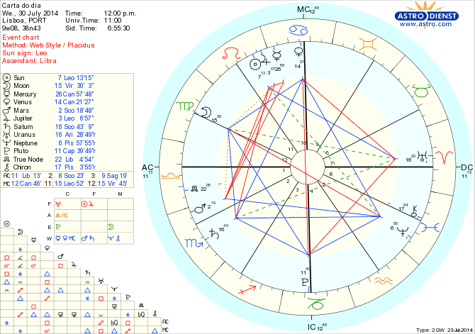 Hoje é mais um dia de potencial confusão ou ilusões em que só a capacidade de separar o trigo do joio e dar de atenção aos pormenores de organização doméstica, financeira, familiar ou estrutural nos pode permitir avançar. A Lua está ainda em Virgem e faz sextil a Vénus em Caranguejo e a Saturno em Escorpião o que nos permite focar mais serenamente nas obrigações para que se possa progredir e prosperar. No entanto, mantêm-se ainda o quincúncio do Sol em Leão a Neptuno e os efeitos fazem-se sentir numa consciência alterada seja por excessos de consumo, delírios ideológicos, glorificação egocêntrica ou o que quer que seja que impeça uma visão clara e generosa da maneira de se estar no mundo. Os toques a Neptuno contribuem para a ilusão do sentir e apenas com criatividade amorosa ou um esforço de equilíbrio entre as pulsões do eu e as necessidades alheias é que poderemos beneficiar da conjunção do Sol a Júpiter em Leão – apesar do aspecto a Neptuno. Um quincúncio da Lua a Urano em Carneiro, por outro lado faz com que a segurança emocional seja dificilmente compatível com expressões de individualismo e independência e como Vénus avança para uma quadratura a Urano, talvez seja esta a preparação para nos próximos dias, vivermos mudanças mais radicais nas relações ou nas finanças, na senda da Lua Nova e oposição de Vénus a Plutão desde o fim de semana. Navegar estes aspectos e contornar cabos em controlo do rumo exige toda a atenção crítica da Lua em Virgem e a aposta numa mudança profunda e equilibrada a longo prazo apoiada no trígono de Vénus a Saturno.