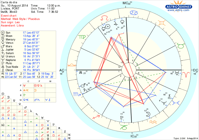Hoje é dia de Lua Cheia em Aquário. Desejamos estar em grupo mas queremos manter o nosso discurso individualista, aspiramos a uma sociedade ou mundo melhor, queremos uma comunidade inovadora mas parece que dificilmente nos conseguimos integrar e que o colectivo não quer ouvir o que de tão criativo temos para dizer. É assim porque a Lua Cheia se opõe ao Sol e a Mercúrio em Leão e esta oposição tem em quadratura Saturno em Escorpião que introduz um terceiro elemento que implica limites, frustração e impede a possibilidade de nos entregarmos de alma e coração seja ao grupo seja ao nosso próprio devaneio. Temos obrigações e isso é incontornável. Assim, o que resta fazer é aceitar que temos que olhar para os limites e poderes em jogo e conciliar a vontade própria, as estruturas de grupo e os constrangimentos existentes. Isso faz-se aproveitando o sextil de Mercúrio ao NN