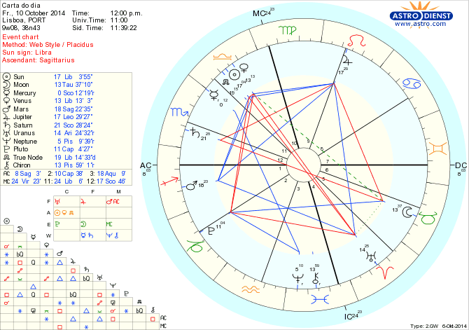 Estamos em vésperas de separações ou encontros surpresa, revelações financeiras ou nas relações pessoais, atrações inesperadas, mudanças de planos de última hora, despesas súbitas, ganhos na lotaria ou outros eventos aparentemente imprevisíveis mas que de certa forma vêm na sequência do que tem vindo a acontecer desde o fim de semana passado e do eclipse de dia 8. Essa volatilidade, associada ao trânsito de Vénus em Balança oposta a Urano em Carneiro, que transita o o mesmo ponto da Lua Cheia e eclipse, pode causar insegurança o que se manifesta na Lua em Touro que pede os pés na Terra, provas concretas, estabilidade material e nos dá pouca flexibilidade emocional para embarcarmos em mudanças. Mas é esse desejo do concreto que pode também servir de motor para chegarmos a novas bases de entendimento. De facto, temos de repensar as relações pessoais ou financeiras porque Mercúrio retrógrado voltou a Balança e, no próximo dia 25, quando entrar directo vai também ele tocar o ponto do eclipse que Vénus toca hoje pondo então um termo negocial ao que estiver em avaliação ou ruptura durante todo este período. O quincúncio de Vénus a Quíron em Peixes dá-nos como pano de fundo a insatisfação antiga, falta de amor ou de dádiva que novamente estamos a confrontar exactamente para nos livrarmos desse velho peso na alma ou na bolsa enquanto o Sol em Balança em sextil a Júpiter em Touro faz-nos querer ir mais longe na expressão da nossa identidade, sermos quem somos e, com o resto dos aspectos, doa a quem doer. É tempo de, no meio da confusão e contradições, avançarmos seguros da nossa própria verdade e em vez de sermos vítimas das circunstâncias tomarmos as rédeas, fazermos opções e tirarmos o maior partido do grande trígono de Fogo ente Marte, Júpiter e Urano.
