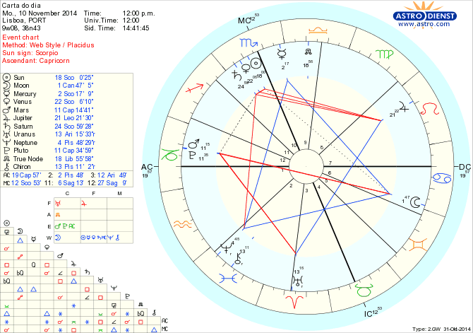 A semana começa com sinais claros que algo de muito forte está a acontecer que muda a nossa perspectiva de segurança e de responsabilidade, para bem ou para mal. Relações, dinheiro, dependências ou poder, questões de vida e de morte mesmo que só metafóricas, são os temas que nos ocupam com Sol, Vénus e Saturno já em conjunção larga em Escorpião. Marte e Plutão conjuntos em Capricórnio fazem cair muros, erguer arranha-céus, transformam estruturalmente as nossas vidas, dos ossos aos alicerces, passando por organizações de governo ou quaisquer outras que moldem as bases em que nos apoiamos. A Lua hoje e amanhã activa a partir do Caranguejo a quadratura de Urano a Plutão e a necessidade de apoio, de raízes, casa, de segurança, do que nos é familiar é a grande carência que temos que ultrapassar. Como a Lua começa por fazer trígono a Mercúrio em Escorpião e a Neptuno em Peixes, é provável que seja com o coração na boca que abordamos em diálogo o que nos faz falta e que sonhamos realizar. Mas há que aceitar os limites, restrições e responsabilidades que Vénus conjunta a Saturno acata, um aspecto de revela despesas elevadas, e a importância de fazer bem as contas ao que se tem e se deve, material e emocionalmente. Marte e Plutão em semi-quadratura a Saturno dão o toque de frustração de que são feitas as revoluções. É uma semana em que muita coisa pode mudar de mãos, uma obra construída ou paredes caídas, mais um passo na construção de novos paradigmas de ordem e segurança.