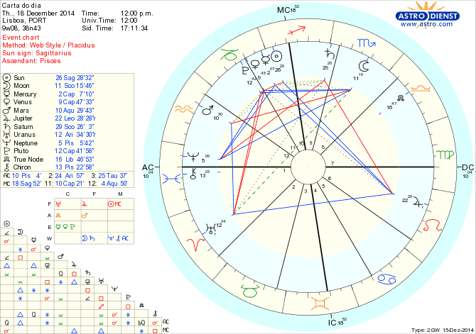 Mesmo sem querer, há velhas feridas que são tocadas, emoções que se intensificam e processos de transformação profunda que é preciso pôr em marcha. Queremos controlar as situações, a desconfiança reina e não podemos fugir. Há que pegar de frente nos problemas, ir ao fundo dos sentimentos, dar a volta e descobrir novas estruturas de segurança emocional, doméstica ou financeira. São as dívidas do coração e da bolsa que mexem hoje com todo o nosso sentir e, com as vulnerabilidades expostas, queremo-nos proteger, antes de pensar no resto. É a Lua em Escorpião em quadratura a Marte em Aquário e sextil a Plutão ao Capricórnio que nos coloca face a situações que temos de resolver adotando novas medidas de funcionamento já que o trígono a Quíron traz a lume questões antigas delicadas que pedem resposta criativa com o quintil de Mercúrio. Em plena quadratura de Urano a Plutão que nos põe numa encruzilhada de transformação pessoal e colectiva, os aspectos de hoje, a caminho da conjunção de Vénus a Plutão são sinais de que há novos valores que têm de se levantar mas, até lá, os velhos valores têm de morrer primeiro. A Lua de hoje em Escorpião e os aspectos que faz confronta-nos com essa necessidade de largarmos velhas dependências e ligações, mesmo que custe.