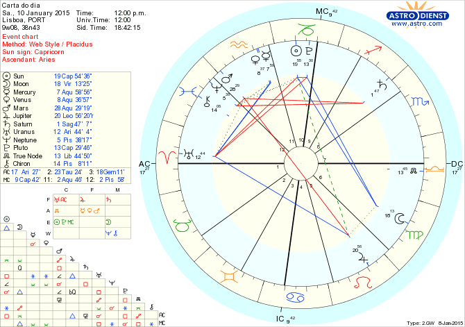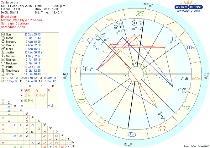 Continua grande a tensão entre o poder e a liberdade, entre as mudanças de fundo e as atitudes erráticas, entre o desejo de controlo e o impulso de acção, sempre sob o peso da frustração da vontade, apesar da análise cuidada da situação. Em semi-quadratura a Plutão em Capricórnio e a Urano em Carneiro – que estão em quadratura até Abril, -está Marte em Aquário a estimular a expressão pública do querer num quadro das plutonianas transformações inevitáveis nas estruturas domésticas e colectivas, catalisadas pelos repentes de Urano que tudo alteram de forma súbita, chocante, libertadora de situações estagnadas. Marte está também em sesquiquadrado ao Nódulo Norte, o que dá a sensação de que apesar da saída passar pelo diálogo, é impossível fazê-lo. A Lua em Virgem estimula o sentido crítico, análise detalhada e o trabalho minucioso e o seu trígono a Plutão ajuda ao discernimento e lógica no processo de mudança.