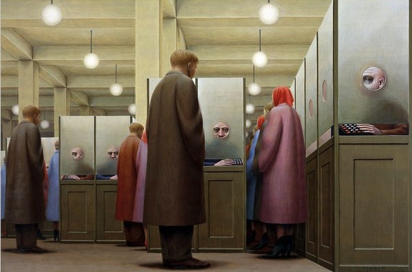 A tela é de Georges Tooker, 1936, pintor figurativo americano.