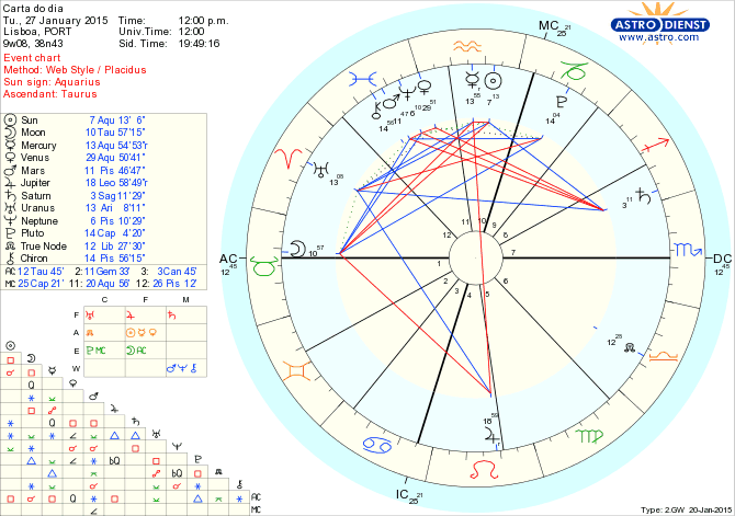 É provável hoje também vermos o resultado de esforços passados que encontram agora expressão e tem bons ecos externos com Mercúrio retrógrado em Aquário em sextil a Urano e oposto a Júpiter. Como o Nódulo Norte em Balança, regido por Vénus em trânsito em Aquário também está envolvido numa oposição a Urano, quadratura a Plutão e sextil a Mercúrio, a chave está em dialogar, chegar a novos compromissos e reposiciomamentos nas relações e dependências pessoais, financeiras ou políticas que nos situam em grupo, no colectivo, no mundo e que ganham com reformas radicais… os céus parecem facilitar a vida dos gregos…