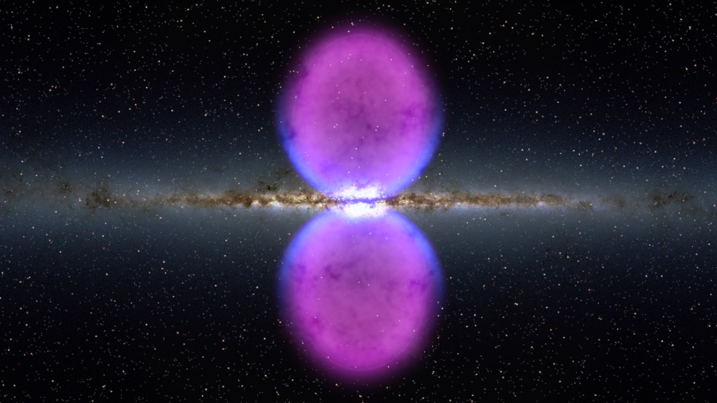 A imagem é uma fotografia tirada pelo telescópio Fermi, da NASA, de uma estrutura até agora desconhecida, no centro da nossa galáxia.