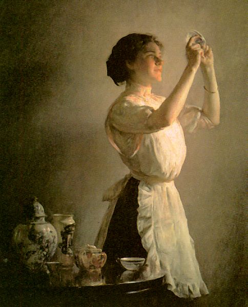 A tela é do pintor americano Joseph Decamp, 1858-1923 e chama-se ” The Blue Cup”