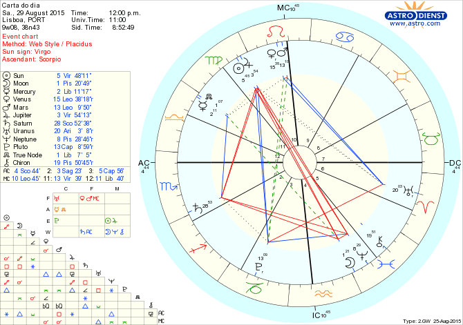 Isto significa que há um travão e uma orientação a ter em conta. A posição de Saturno simboliza as responsabilidades pendentes, custos, dívidas emocionais ou financeiras por saldar que são o travão ao devaneio e forjam a resolução prática a pensar no longo prazo. Os aspectos de Mercúrio/ Nódulo Norte mostram que não é sozinhos que resolvemos as tensões, tem de haver diálogo, concertação, acordos. E, como Vénus, regente da Balança, está retrógrada em Leão, conjunta a Marte e em quincúncio a Plutãoe semi-quadratura a Mercúrio/Nódulo ficamos a saber que há que, apesar de ser difícil, ultrapassar a tentação de só fazermos o que nos apetece, como nos apetece. Sem domar o narcisismo ou a busca de auto-satisfação não é possível levar por diante o grande esforço de proceder a transformações profundas nas estruturas das coisas em que estamos envolvidos e para as quais o equilíbrio da balança das relações é fundamental.
