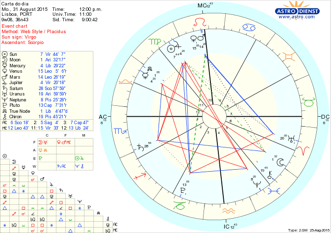 Tomar ou não iniciativas é a hesitação do arranque desta semana, principalmente depois de bem feitas as contas pela manhã e respeitados os encargos e responsabilidades pendentes. Isto porque a Lua no final do seu trânsito pelos Peixes faz um trígono a Saturno retrógrado em Escorpião pelo final da manhã GMT, onde cumpre de bom grado obrigações para depois entrar no Fogo de Carneiro e pedir acção ou estar na expectativa que algo de novo aconteça. Mas acontece que a Lua ao entrar em Carneiro faz conjunção ao Nódulo Sul e oposição a Mercúrio e Nódulo Norte em Balança. O resultado é que se respondermos aos impulsos e agirmos unilateralmente- apesar de ser o mais fácil- não seremos bem sucedidos. Carentes de acção podemos ser confrontados com capacidade de sozinhos as levar por diante. O tempo é de análise conjunta, diálogo e concertação e quaisquer iniciativas só serão válidas se forem nesse sentido. Há ainda que, tal como no fim de semana tentar deslindar o que é sonho e o que é realidade com Sol e Júpiter em Virgem em oposição a Neptuno em Peixes. Em resumo, um dia para tentar pôr em prática o que idealizamos desde que isso seja útil a muitos e a nós também, promovendo acções que unam os vários interesses em jogo.