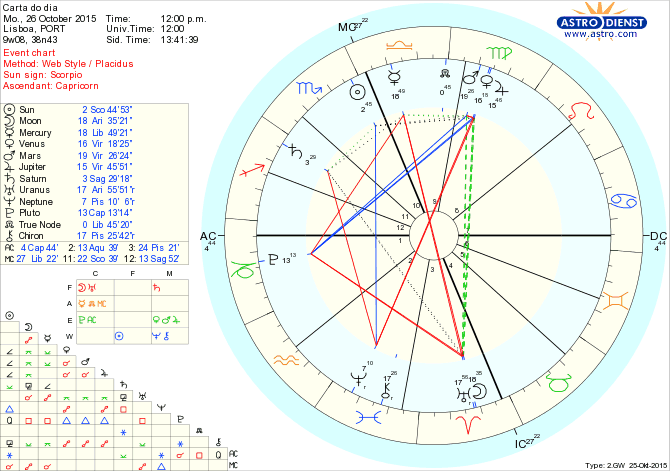 Em vésperas de uma potente Lua Cheia, temos esta segunda feira de estar prontos para deixar para trás dependências e receios. Aliás o ímpeto de acção ou instinto de sobrevivência está exacerbado com a conjunção da Lua a Urano em Carneiro e pode mesmo parecer que não há tempo a perder para levarmos por diante o que queremos conquistar. A impaciência, irritabilidade, brusquidão de uns faz com que os outros fiquem surpreendidos e a instabilidade do dia é grande, agravada pela oposição da Lua a Mercúrio em Belança e quincúncio a Vénus, Júpiter e Marte em Virgem. Há que resolver a tensão nos diálogos ou negociações entre o impulso e a organização cuidada, o desejo de liberdade e as obrigações de serviço, a acção intempestiva e o atenção ao detalhe. Feito isso, é possível encarar a Lua Cheia de amanhã como o culminar de um período em que se esgotaram as possibilidades de acordo que se começaram a desenhar na Lua Nova de 12 de Outubro e em que temos de resolver a contradição entre a insegurança e a mudança, com a Lua em Touro e o Sol em Escorpião. Vénus é o planeta que tem a resposta, conjunto a Júpiter, oposto a Quíron- relações, valores, amor, dinheiro, a matéria de que os laços são feitos é que têm de ser revistos à lupa para podemos passar a uma nova fase de entendimento do que de facto é importante salvaguardar.