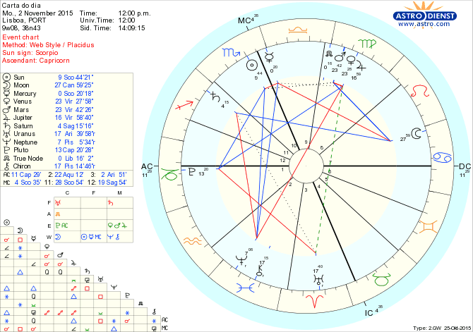 Acabou o tempo de conversa suave. Agora o que se disser é para ter impacto, poder e para isso há coisas que têm de ficar por dizer, sob reserva de nos expormos em demasia. São as emoções mais poderosas que dominam a razão e os assuntos sombra como sexo,controlo, morte, violência, o oculto. Também a manipulação emocional e dependência ou chantagem financeira fazem parte do rol menos luminoso da entrada hoje de Mercúrio em Escorpião. O lado iluminado pelo contrário permite conversas regeneradoras, percepções psicológicas, a investigação que revela a verdade purificadora. Seja Luz ou Sombra, Mercúrio em Escorpião garante a intensidade das interações e carga poderosa das mensagens. A acrescentar ao dramatismo do dia, a entrada da Lua em Leão pela tarde GMT, quadrada a Mercúrio e ao Sol, agrava a agitação emocional, ficamos na dúvida do porquê e quando e podemos mesmo pensar que é impossível levar por diante a vontade. De facto, há que estabilizar princípios com a ajuda do trígono de Saturno em Sagitário à Lua em Leão e procurar o diálogo com o semi-sextil da Lua ao Nódulo Norte. Vénus e Marte conjuntos em Virgem são o garante que se fechou um ciclo de organização e temos de começar outro em que o renascer das cinzas da velha ordem tem de ter primazia- porque Mercúrio regente da Virgem entrou em Escorpião.