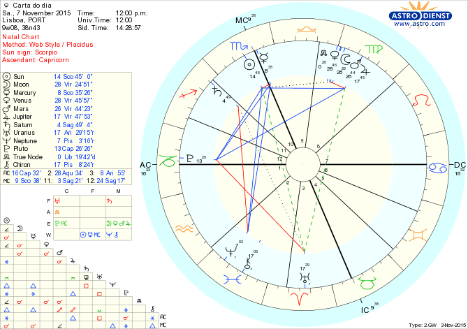 Começamos o dia por nos preocupar com pormenores de organização, contas ou por nos questionar se estamos a servir os nossos interesses da melhor maneira, com a Lua em Virgem a estimular criticismo, conjunta a Marte e Vénus a amplificar o desejo de fazer bem feito, numa dinâmica em que somos os nossos piores inimigos. Pela tarde a Lua entra em Balança em sextil a Saturno em Sagitário o que nos leva a pôr o foco nas relações e na estabilidade de princípios que as regem, numa procura de oportunidades para definir bases de entendimento a longo prazo. Urano em Carneiro sesquiquadrado a Saturno e quincúncio a Júpiter mostra que não podemos fazer tudo o que nos apetece e que há que seguir regras e trabalhar o seu funcionamento.