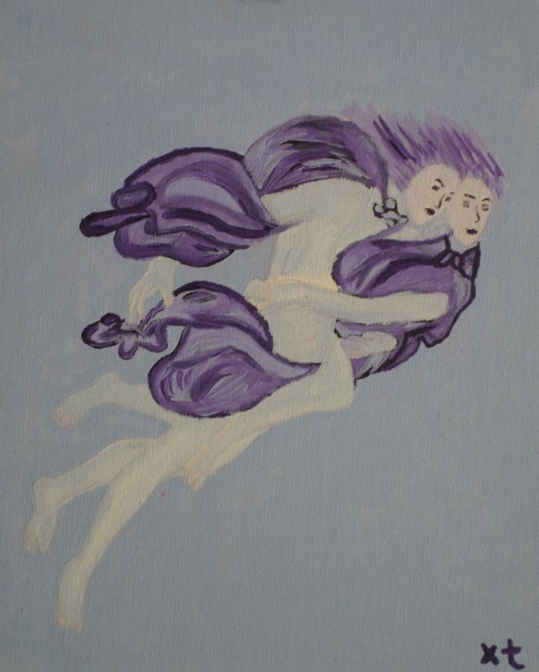 A tela é de Tania Katzouraki, “The Theatrical Couple on the wind trying to hold on”