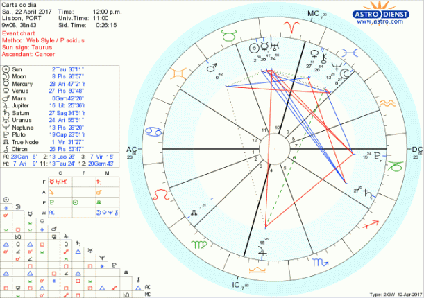 Quanto maior a capacidade de empatia, criatividade, amor, aliada ao sentido prático mais facilmente ultrapassamos as contrariedades ou ambivalências que teremos de enfrentar este fim de semana em que a Lua vai estar em Peixes tornando-nos excessivamente sensíveis ao visível e invisível, ao longo da conjunção a Neptuno no sábado, a que se segue uma conjunção a Quíron no domingo em que as feridas antigas se manifestam e têm de ser ultrapassadas friamente, sem lugar a emoções quando a Lua, Quíron e Vénus conjuntos estiverem em quadratura a Saturno em Peixes. Marte em Gémeos em sesquiquadrado a Júpiter em Balançam traz situações que parecem não ter saída, perdidos que podemos estar entre esta ou aquela hipótese enquanto Urano e Mercúrio retrogrado em Carneiro, em trígono a Saturno, mostram que há que pensar diferente para poder abrir novos caminhos que desbloqueiem impasses e resolvam as dolorosas falhas, pessoais e colectivas. É um fim de semana em que sábado ainda podemos sonhar mas que o domingo nos pede grande dose de realismo. O sentido prático para materializar soluções seguras vem do trígono do Sol em Touro ao Nódulo Norte em Virgem.