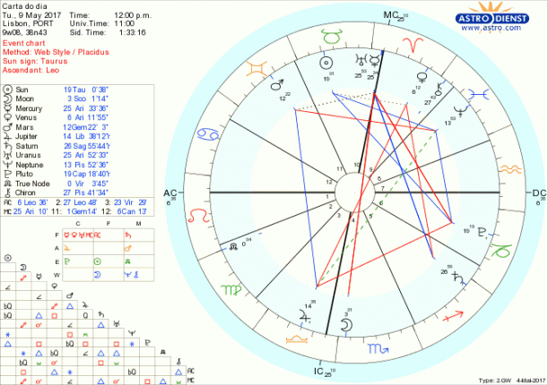 Entre hoje e amanhã confirma-se o que temos estado à espera de conseguir mudar, valorizar, construir e que represente uma transformação no controlo que temos das coisas, como se houvesse bens ou poderes de que temos de abdicar para dar lugar a uma renovação profunda, catártica, com Plutão regente do Escorpião em Capricórnio em trígono ao Sol em Touro e a Lua Cheia em Escorpião, oposta ao Sol e sextil a Plutão. À intensidade com que vamos viver esse climax devemos dar o desconto de estamos iludidos sobre a importância do que está em causa. Será certamente importante e transformador mas como Marte, outro regente da Lua em Escorpião, está em Gémeos em quadratura a Neptuno em Peixes e trígono a Júpiter em Balança, pode haver a tendência para falar demais, hiper-valorizar factores e poderes e procurar conquistar terreno junto de uma qualquer audiência independentente do valor real do que se estiver a defender. Mercúrio e Urano conjuntos em Carneiro apelam ainda mais a uma lógica de não restrição, ou iniciativa em liberdade, apenas enquadrada pelo trígono a Saturno em Sagitário. Em resumo, tempos de sentimentos intensos face ao que está em processo de mudança mas em que o único control que de facto podemos ter é sobre nós próprios, apesar da ilusão de que é através dos contactos múltiplos que conseguimos as garantias.