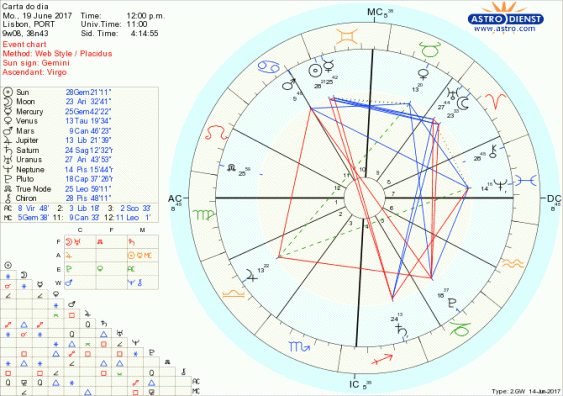 Quebradas certas barreiras estamos prontos a surpreender e ser surpreendidos pelo que há novo, pelas nossas próprias capacidades e criatividade, pela profundidade dos nossos objectivos e desejo de verdade a longo prazo com a Lua hoje conjunta a Urano em Carneiro e a participar do grande trígono de Fogo entre Urano, Saturno em Sagitário e o Nódulo Norte em Leão. O que interessa é poder exprimir a diferença graças ao sextil do Sol e Mercúrio em Gémeos à Lua e a Urano e apostar em valores seguros, apoiados, mesmo que haja alguma tensão, por um vasto de leque de relações que sejam equilibradas, justas, devido ao quincúncio entre Vénus em Touro e Júpiter em Balança. A importância da quantificação e qualificação das coisas e das relações aumenta nos próximos dias com os aspectos da Lua em Touro por isso é melhor pensar desde hoje nos valores financeiros ou morais que estão em jogo.