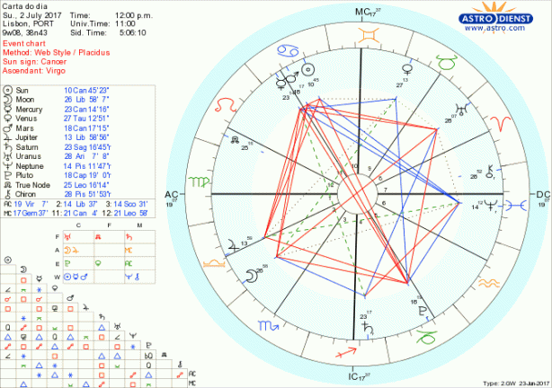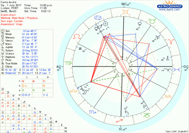 É na área das relações, pessoais, financeiras, políticas ou diplomáticas que temos este fim de semana de aceitar mudanças, surpresas, transformações profundas, com festa ou sem ela, nos equilíbrios existentes, para bem ou para mal mas sempre para nos libertarmos de amarras fantasiosas, porque a única coisa que conta é darmos o valor certo ao que ou quem realmente conta. Com a Lua, tanto sábado como domingo em trânsito em Balança é naturalmente para nos relacionamentos, num fiel mais ou menos equilibrado entre o dar e receber que se viram as nossas emoções e respostas instintivas. No entanto, essa atenção não é estática nem as relações estão isoladas. Tanto sábado como domingo, a Lua faz uma serie de aspectos aos restantes planetas do Zodíaco o que vai certamente perturbar a ordem desejada ou existente. Com o Sol, Marte e Mercúrio em Caranguejo – que a Lua rege- em oposição a Plutão em Capricórnio, é em casa, família, país que o ímpeto de mudar radicalmente a organização mais se vai fazer sentir. Está uma hora de mudar, partir, seja de ferias, seja de vez, chegar, re-organizar e criar uma nov base de segurança, num processo certamente já em curso ma que nos ocupa até meados de Julho quando o Sol terminar a oposição a Plutão. Todas estas transformações deveriam ser em nome de um ideal, de uma aspiração estética, amorosa, humanista, quase universalista, como se mudar a casa fosse salvar o mundo, com um trígono dos planetas em Caranguejo a Neptuno em Peixes.