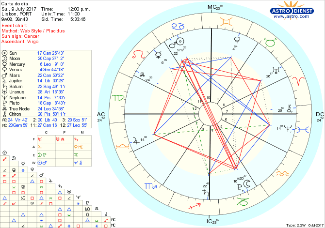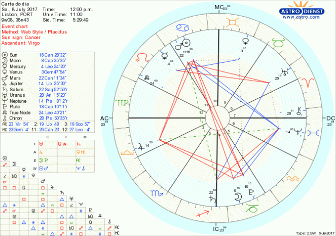 Obras, cirurgias, mudanças, tudo o que altere o que se pretendia ser a estabilidade básica são expressões dos aspectos desta Lua em que a única coisa que podemos controlar é a nossa própria capacidade de abrir mão do passado e abraçar o que de novo pode surgir. Essa inovação está nas nossas mãos desde que bem fundamentada graças ao grande trígono de Fogo entre o Nódulo Norte em Leão, Saturno em Sagitário e Urano em Carneiro. Mesmo que tenhamos alguma indecisão com Vénus em Gémeos não a devemos deixar transparecer e é melhor falar com a autoridade de quem sabe com Mercúrio em Leão. O que se pretende é estabelecer um novo equilíbrio doméstico, familiar, com apoios externos mas não dependente deles pelos aspectos a Júpiter em Balança. As novas regras temos de ser nós a fazê-las e o que as dita será a consciência e não o receio da mudança. Vai ser intenso este fim-de semana cuja chave de sucesso depende da capacidade de articular conservadorismos e transformação.