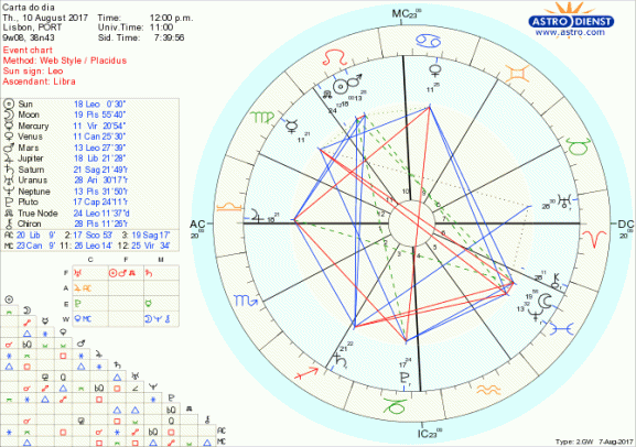 Hoje é um dia para sonhar com situações, relações e a segurança emocional ideal e tudo fazemos para o conseguir, graças a Lua em Peixes conjunta a Neptuno, trígono a Vénus em Caranguejo e sextil a Plutão em Capricórnio que simboliza o sonho que comanda as transformações positivas da vida com o Fogo do Sol conjunto a Marte em Leão, sextil a Júpiter em Balança e trígono a Saturno em Sagitário. Mas não podemos ir atrás de quimeras e a fantasia tem de estar enquadrado num projecto maior que represente uma organização e princípios de vida a longo prazo. Uma quadratura da Lua Saturno pode parecer frustrante mas é apenas uma chamada à realidade para que o sonho tenha pés para andar sem nada de vago nem exageros, o primeiro estimulado pela conjunção Lua Neptuno e os segundos pelo sextil do Sol a Júpiter em quadratura a Plutão que pode exacerbar o desejo de tudo controlar, em abuso de poder. Com este aspecto e com um quincúncio de Marte a Neptuno, o grande esforço dever ser o de controlo sobre nós próprios.
