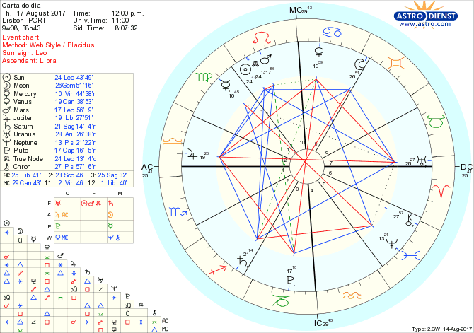 Nem todas as ideias são boas mas é bom ter abertura de ideias para poder afinar conceitos e encontrar a boa resposta original que prove que podemos brilhar: para isso beneficiamos pela manhã da Lua em Gémeos em oposição a Saturno em Sagitário, sextil a Urano em Carneiro, trígono a Júpiter em Balança e sextil ao Nódulo Norte e ao Sol em Leão. Á tarde a Lua entra em Caranguejo e é a segurança emocional que nos inquieta, procurando em casa, família, raízes ter e dar os apoio que sentimos necessários, mais ainda porque intuímos ou sabemos concretamente que há fins e começos em vista com o eclipse do Sol e Lua Nova de dia 21. Esta busca de segurança é premente porque Marte em Leão em quincúncio a Plutão em Capricórnio excita a zanga ou a expressão excessiva da vontade cega face a conflitos externos ou internos quando é posta em causa a tal estabilidade emocional. Todo o cuidado é pouco, por isso, para não se ir atrás de respostas compulsivas em vez de tentar entender qual é o padrão emocional que se está a repetir e está na hora de ser alterado.