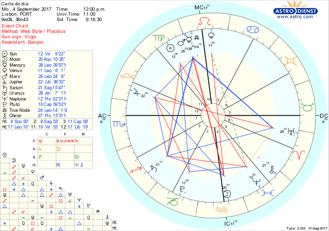 A semana começa com um mar de contactos, relações sociais, descoberta do que nos faz sentir parte de um grupo mas não podemos esquecer a nossa própria individualidade nem submeter a auto-estima à avaliação colectiva, com a Lua em Aquário, oposta a Vénus em Leão, trígono a Júpiter e conjunta ao Nódulo Sul. O trabalho e a organização do serviço são certamente o foco das energias e sentimos a tensão entre as ideias e a prática, num crescendo esta semana até à quadratura exacta do Sol em Virgem a Saturno em Sagitário. A chave está em encontrar as terceiras vias que resolvam conflitos, através de iniciativas originais depois da revisão do que estiver na mesa, com Urano em Carneiro em trígono a Marte, Mercúrio retrógrado e Nódulo Norte em Leão. O resultado vai ser visível no final da semana quando o Sol fizer trígono a Plutão em Capricórnio e todo o trabalho, atenção e descodificação que fizermos até lá, der frutos que se traduzam numa nova partilha de bens e poderes, organização estrutural, força transformadora das bases em que estamos inseridos. Há que, desde hoje, encontrar soluções viáveis para o grupo a partir da acção individual. Um por todos, todos por um.