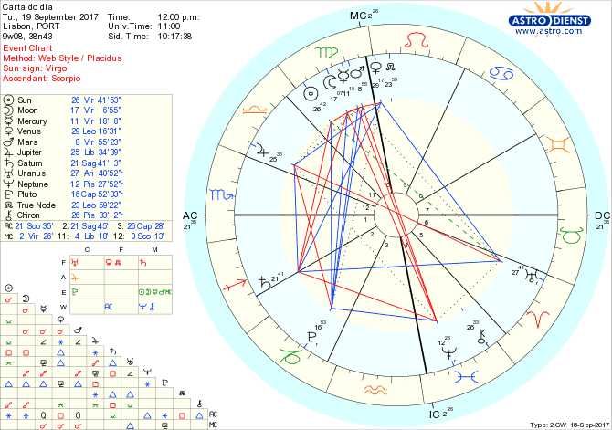É já na madrugada de amanhã a Lua Nova em Virgem e a entrada de Vénus também neste signo onde se encontram Marte, Mercúrio e o Sol. Estamos assim na fase final de afirmar quem somos e do que somos capazes- com Vénus ainda em Leão- antes de nos dedicarmos do coração aquilo de que a mente e o gesto já estão a tratar, com sentido crítico, atenção ao detalhe, uma escolha atenta das palavras e dos números e dos cuidados que temos de gerir nas relações e poderes em que estamos envolvidos. Mas é preciso encarar não só os pormenores como o quadro geral e sentido das coisas. Estamos a trabalhar por nós próprios mas não estamos sozinhos e o que fazemos ou nos propomos fazer devia servir o bem comum com o Sol em Virgem em semi-sextil a Júpiter em Balança. A oposição do Sol a Quíron em Peixes e a de Mercúrio a Neptuno, também em Peixes, lembram-nos que perdoar cura e que não podemos olhar para os folhas sem sentir também as florestas, elevando-nos, pelo espírito, acima do serviço do mero interesse pessoal. Mas atenção, este trânsito de Mercúrio oposto a Neptuno pode causas confusões nas coisas práticas do quotidiano com a agravante de vir aí de seguida uma oposição de Marte e outra de Vénus também a Neptuno, muito boas para nos fazer ver que é preciso guiarmos-nos por algo maior mas muito complicadas para discernirmos a realidade da fantasia, o que faz sentido do que é projecção. Vale a pena hoje interrogarmo-nos profundamente sobre os objectivos, métodos que queremos pôr em marcha para a Lua Nova de amanhã, conscientes das verdadeiras consequências….