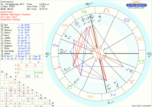 Tudo é sentido com paixão, intensidade, desejo de controlo, tanto sábado como domingo, vemos o pior e o melhor que há em tudo e a isso reagimos para proteger ou vingar o que nos é querido. É a Lua em Escorpião, sábado, domingo e ainda na manhã de segunda-.feira, que dá o mote para essa perspectiva profundamente sentida das interacções que nos ocupam, no amor, em casa, na paz e na guerra, certamente sobre qualquer tipo de relação que não prove ser justa, equilibrada, correcta, já que o Sol está em Balança e Vénus em Virgem está atenta a todos os detalhes e contabilidade emocional.