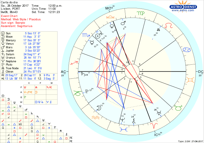 Este fim-de-semana não é para ficar parado ou olhar para trás. Pelo contrário, tanto sábado como domingo temos de nos focar no futuro e com quem o queremos construir, principalmente depois dos conflitos, rupturas ou oportunidades de mudança nas relações pessoais, financeiras ou políticas que ocorreram durante a semana. A Lua está nos dois dias no signo de Aquário, regido por Saturno e Urano, o primeiro em Sagitário, o segundo em Carneiro o que nos leva a procurar o grupo ou colectivo que pense como nós e queira ter iniciativas inovadoras. Marte em Balança e Júpiter ainda conjunto ao Sol em Escorpião ilustram as relações que se rompem e a vontade de assumirmos o controlo dos processos de transformação em curso. O semi-sextil de Marte a Júpiter alinha o querer com a possibilidade de ir mais longe e será com força e convicção que avançamos. No domingo temos no entanto pela frente o confronto com o destino através da forma como comunicamos a vontade de mudar e o que vemos de profundamente certo e errado naquilo que partilhamos e queremos controlar, com Mercúrio em Escorpião em quadratura ao Nódulo Norte em Leão. Não é só a Catalunha que toma em mãos o seu futuro, será essa a tendência de cada um de nós aos níveis vários em que isso nos for necessário, procurando ecos em quem está no mesmo percurso.