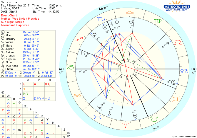 Tudo é mais intenso, sentido mais intimamente, com respostas instintivas, uma protecção cerrada e a capacidade de cortar a direito aguçada enquanto mergulhamos mais profundamente nas questões que se levantam sobre o controlo que temos ou não do que partilhamos fisicamente, materialmente, financeiramente, o que podemos transformar, o que retemos, como podemos ter mais poder ou aceitar perdê-lo todo e passionalmente vivermos a nossa relação com tudo e todos. As emoções dominam assim o dia com a Lua em Caranguejo em trígonos sucessivos a Vénus, Júpiter e Sol em Escorpião e a Neptuno em Peixes, todas as águas do Zodíaco envolvidas para transformar ilusões em realidade se formos capazes de separar nessas mesmas água o que é verdade e o que é desejo. Está também na agenda ir ao fundo das questões, graças ao planetas em Escorpião e contamos ainda com a ajuda de Saturno em Sagitário em sextil a Quíron e de Neptuno em sextil a Plutão, ambos a darem-nos a oportunidade de olhar para velhas feridas e ilusões que afectam o pragmatismo para lhes dar nova orientação mais livre de ónus e encargos emocionais ou financeiros do passado. Podemos sonhar hoje com estabelecer novas bases de segurança emocional, ter uma nova casa, transformar a família, o país, a nação, as tradições e fazê-lo para que correspondam melhor ao que somos e para onde queremos ir porque é para aí que aponta o Nódulo Norte em Leão em sextil toda a semana ao Sol em Escorpião. Queremos garantias de que as bases são sólidas e estamos prontos para transformar o que estiver ao nosso alcance para atingir objectivos a longo prazo, doa a quem doer. Mas o mais difícil vai ser ter flexibilidade e controlar o puro desejo de controlo.