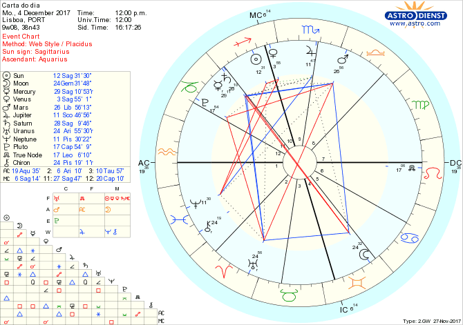 A semana começa com a necessidade de atenção redobrada a todos os processos de comunicação, contabilidade, estudo, viagem, tudo o que há que programar segundo uma determinada ordem e que precisa de ser revisto com cabeça fria. São as perspectivas e lógica de futuro que pedem reflexão e trabalho prático, depois desta madrugada termos tido a Lua Cheia de Gémeos que, oposta ao Sol em Sagitário, extremou a tensão entre o que deve vir ser e como o exprimimos, ao mesmo tempo que Mercúrio, conjunto a Saturno em Sagitário, regente de Gémeos, ficou retrógrado até dia 24. Assim, hoje entramos no processo decrescente de revisão da matéria, fecho de contas, fecho do ano, definição de projectos de futuro a que vamos ter de dar forma a partir do momento em que Saturno entre em Capricórnio, a partir do final de Dezembro e em particular entre 13 e 17 de Janeiro quando Mercúrio fizer nova conjunção a Saturno mas já em Capricórnio e tivermos também a Lua Nova de Capricórnio, um conjunto de sinalizações de que a organização, control, poder necessários para fazer mudanças profundas nas estruturas de que dependemos, entram de vez numa nova fase, a e ano novo, vida nova. Esta segunda-feira começamos a completar os processos que nos devem legar a esse novo ciclo. Com Júpiter em trígono a Neptuno, a inspiração não falta e há que seguir ideais e revelar a Verdade.